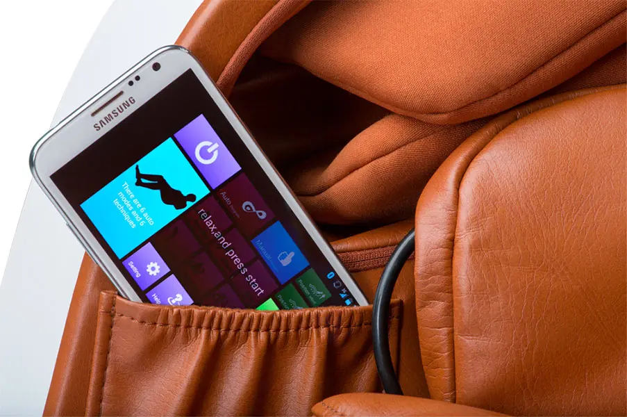 - - к креслу через Bluetooth подключается телефон, с которого можно осуществлять управление массажером или прослушивать музыку через колонки, встроенные в кресло;